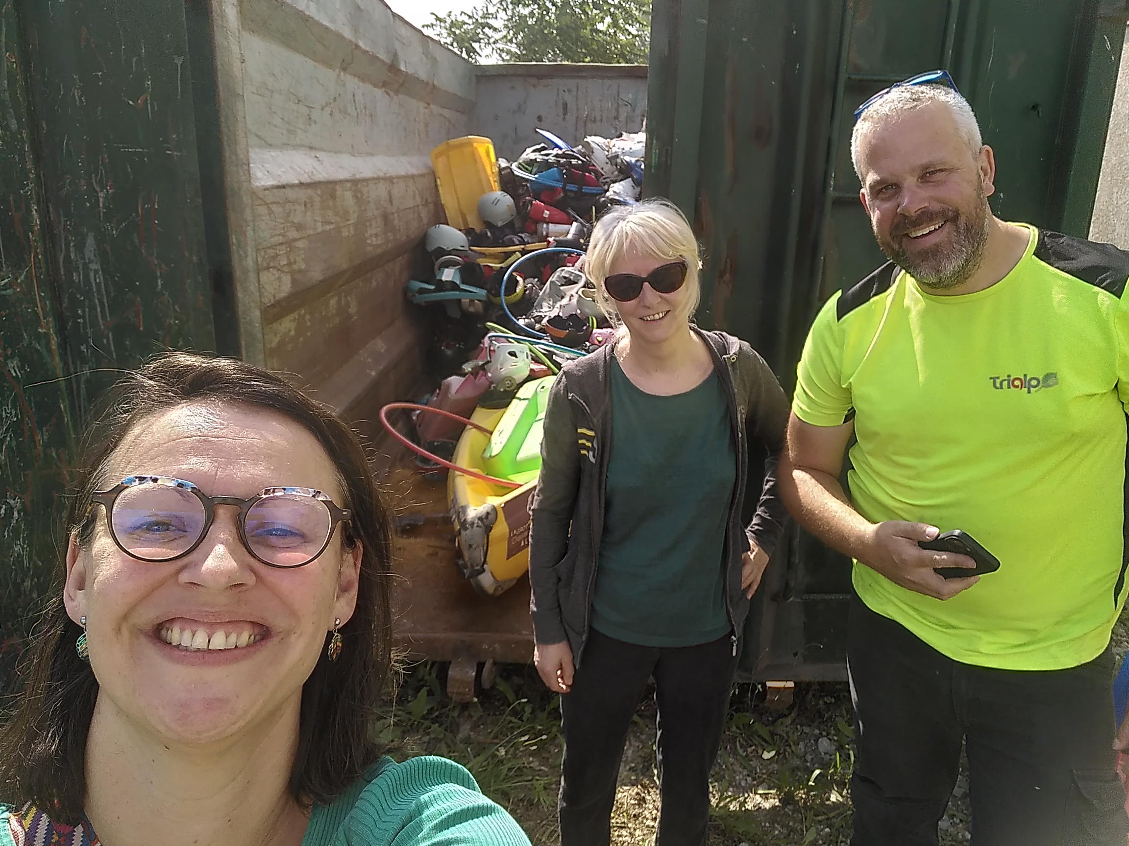 Tout près de Mélifaire, dans la Drôme, il existe un collectif d’acteurs locaux qui se sont rassemblés pour créer une micro filière territoriale de traitement de déchets plastiques : Paillettes. Depuis 3 ans, ce consortium réunit une dizaine de partenaires (collectivités locales, associations, entreprises) pour expérimenter une boucle locale. Ainsi, Paillettes collecte des déchets plastiques (canoës usagés, bobine de fil, fût, poubelle plastique…etc); les broyent en paillettes puis les revend. La FabUnit membre et pilote du collectif achète des paillettes pour les refondre en plaques qu’elle utilise dans la fabrication de mobilier (chaises, comptoir, bibliothèques…etc) à très faible impact environnemental (certifié EcoImpact).